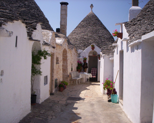 En el viaje pasamos por un pintoresco pueblo llamado alberobello con unas casas muy bonitas que reciben el nombre de trullis.