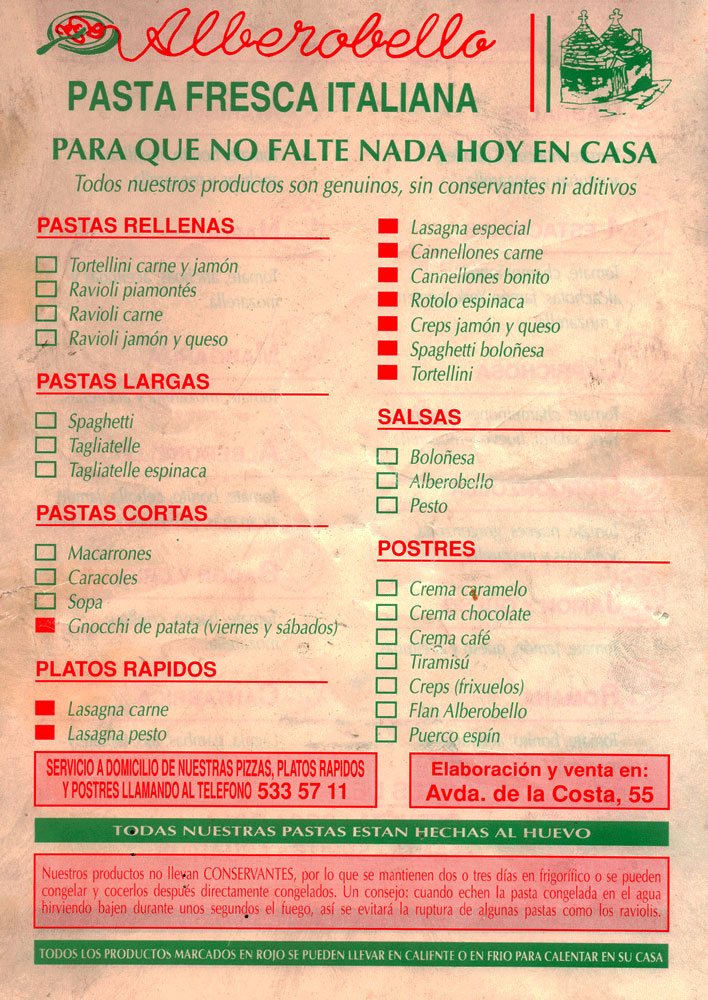 ¿Qué será eso?, nos preguntabamos entonces. Si allí la pasta no se estila, las pizzerías ni se conocen y el reparto a domicilio es una utopía. Pero en un arrebato de confianza, con muchisimo trabajo y posteriores viajes a la bella Italia para comprar maquinaria para la fabricación de la pasta(aquí no existía tal cosa) montamos un pequeño negocio en una pequeña tienda en la avenida de la costa de Gijón.