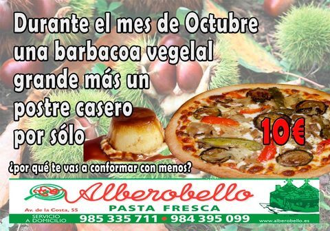 Una pizza barbacoa vegetal grande más un postre casero por sólo 10€